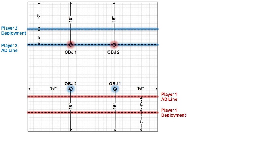 Новичковый турнир по Warmachine/Hordes «Паровые Когти»: Приглашаем всех желающих принять участие в новичковом турнире по Warmachine/Hordes «Паровые Когти». Количество туров: 4 Дата проведения: 19 мая 2012г. Место проведения: Клуб «Тактика» Начало регистрация: 12-00 Начало первого тура: 13-00 Стоимость участия: 300 р. Призы: победитель получает сертификаты на покупку в нашем магазине, также будет приз за покраску и бонусы учаcтникам эвента. Регламент турнира: I тур: 13:00 – 13:55 II тур: 14:00 – 14:55 III тур: 15:00 – 15:55 IV тур: 16:00 – 16:55 Лимит тура: 5 ходов Важно! Ход одного игрока длится ровно 5 минут, после этого он ОБЯЗАН передать ход оппоненту (контроль за временем остается на усмотрение игроков), но по истечении времени тура звучит команда Dice Down («Кубы на стол!») и победитель определяется по текущим результатам, вне зависимости от того, успел-не успел доходить игрок. Допуск к турниру: армия на 15 очков, обязательно должны быть открашены передние арки. Допустимые 2 прокси: кастер/лок, 1 джек/варбист, 1 соло/отряд. Обязательно наличие читабельных карточек-листов, желательно в протекторах, во избежание проблем с чтением их, восприятием оппонентами. Оценка прокси остается на усмотрение судейской коллегии. Миссии на турнир (тур/миссия/спецправила): I тур – Стандартный разминочный кастеркилл, Киллбокс II тур – Mosh Pit, Неприкасаемый III тур – Уничтожение, Кастеркилл, Киллбокс IV тур – Killing Field, Киллбокс Примечание: Деплои игроков - равные, по 10 дюймов. Киллбокс - после конца первого раунда вступают в силу правила миссии "Киллбокс". Иными словами - начиная с второго хода первого игрока, если на конец хода игрока его кастер или варлок находится ближе чем десять дюймов от любого края стола, то он уничтожается автоматически. То есть, если вы не выйдете из своего деплоя к второму ходу, вы автоматически проиграете. Неприкасаемый – в этом типе сценария вы должны уничтожить всех варджеков/варбистов и пехоту противника, но варкастер/варлок не должен пострадать, иначе будет засчитана автоматическая победа тому, чей колдун погиб. Миссия «Уничтожение»: Вкратце: игроки пытаются уничтожить два объекта на части стола оппонента. Особенность: интерактивные объекты Monolith (Монолит) Перед расстановкой расположите объект (Монолит) на обеих позициях ”OBJ1” в соответствии с диаграммой ниже. Когда объект на позиции ”OBJ1” уничтожен, поместите новый объект (Монолит) на позицию ”OBJ2” на той же стороне стола во время фазы поддержки, используя правило наименьшего нарушения (Warmachine Prime, стр. 64), если это необходимо. Игроки получают 1 балл контроля за каждый объект, который был уничтожен на части стола оппонента. Условия Победы Первый игрок, получивший 2 балла контроля выигрывает игру. Если время, отведенное на игру заканчивается раньше, чем игрок побеждает по условиям сценария или убийством, расчет производится по правилам, описанным в разделе "Победа и Тайбрейк". Если имеет место третий вариант тайбрейка, учитывается только стоимость юнитов, находящихся в 4 дюймах от объекта на части стола оппонента. Интерактивный Объект (Interactive Objectives): имеет базу 50 мм диаметром и следующие параметры: - ARM 20, Здоровье 20 - Блокирует линию видимости, как миниатюра с базой 50 мм - Можно заявлять Нападение на объект - Можно наносить повреждения объекту при помощи дальних атак с любой силой - В первый ход не может быть выбран целью или получить поврежде
