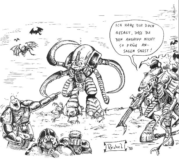 Nix77 Опубликовано 13 ноября, 2007 Жалоба Поделиться Опубликовано 13 ноября, 2007 Как известно, боевой клич берсеркеров Кхорна - "Кровь - Богу Крови! Черепа его трону!". Мало кто знает, что остальные из великой четверки тоже пытались обзавестись собственными кличами. Но "Магия - Богу Магии" еще могло как-то звучать... Если бы не одно но: хоть один Бог Магии был в любом пантеоне. "Изменение - Богу Изменения" - слишком длинно, но говорят до сих пор произносится шепотом некоторыми глупыми адептами Тзинча в городах Империи. "Глупыми" - потому что инквизиция уже много таких повязала по этому паролю. Высшие же иерархи Бога Изменений придумывали более нейтральные пароли. Типа "Зеленый суслик смотрит на луну из сыра." Нурглитские кличи были вменяемы, но у большинства нурглитов были настолько изъедены всякими болячками голосовые связки, что вместо клича вырывалось хрипение, кряхтенье, сопение... В, общем, Дедушка Нургла попросил подопечных не позориться. Когда же свои версии прокричали Слаанешиты - все остальны покраснели похлеще кхорнитских доспехов и потребовали, чтобы слаанешиты соблюдали хоть какие-то приличия... Ссылка на комментарий Поделиться на другие сайты Поделиться